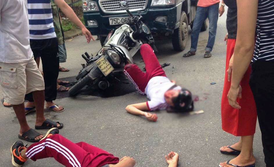Vào thời điểm trên, Nguyễn Xuân Huỳnh điều khiển xe máy biển số 75L1- 9472 chở theo Nguyễn Khoa Trí (cùng SN 1998, trú Quảng Trị, đang là sinh viên một Trường Trung cấp tại TP. Huế) chạy trên đường Hồ Đắc Di.