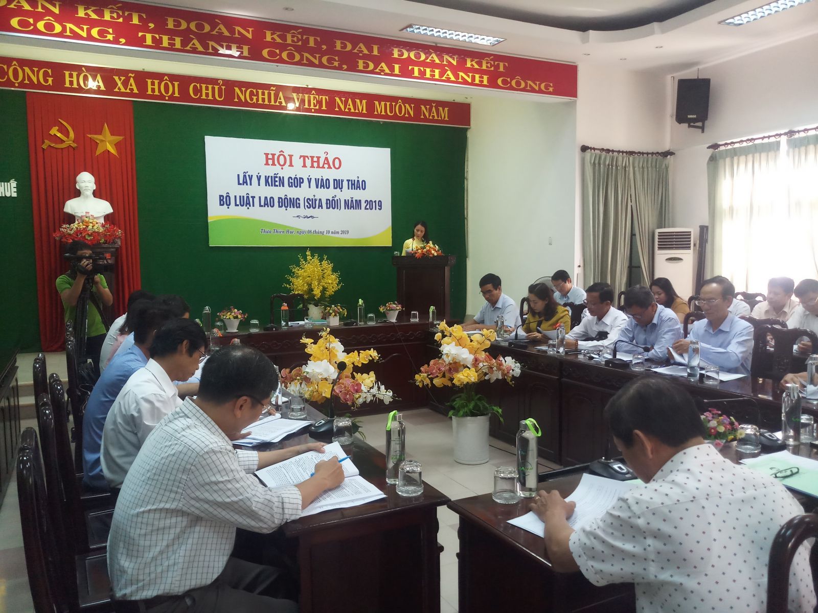 Hội thảo lấy ý kiến góp ý dự thảo Bộ luật Lao động do bà Phạm Thị Ái Nhi, Phó Chủ tịch UBMTTQVN tỉnh chủ trì