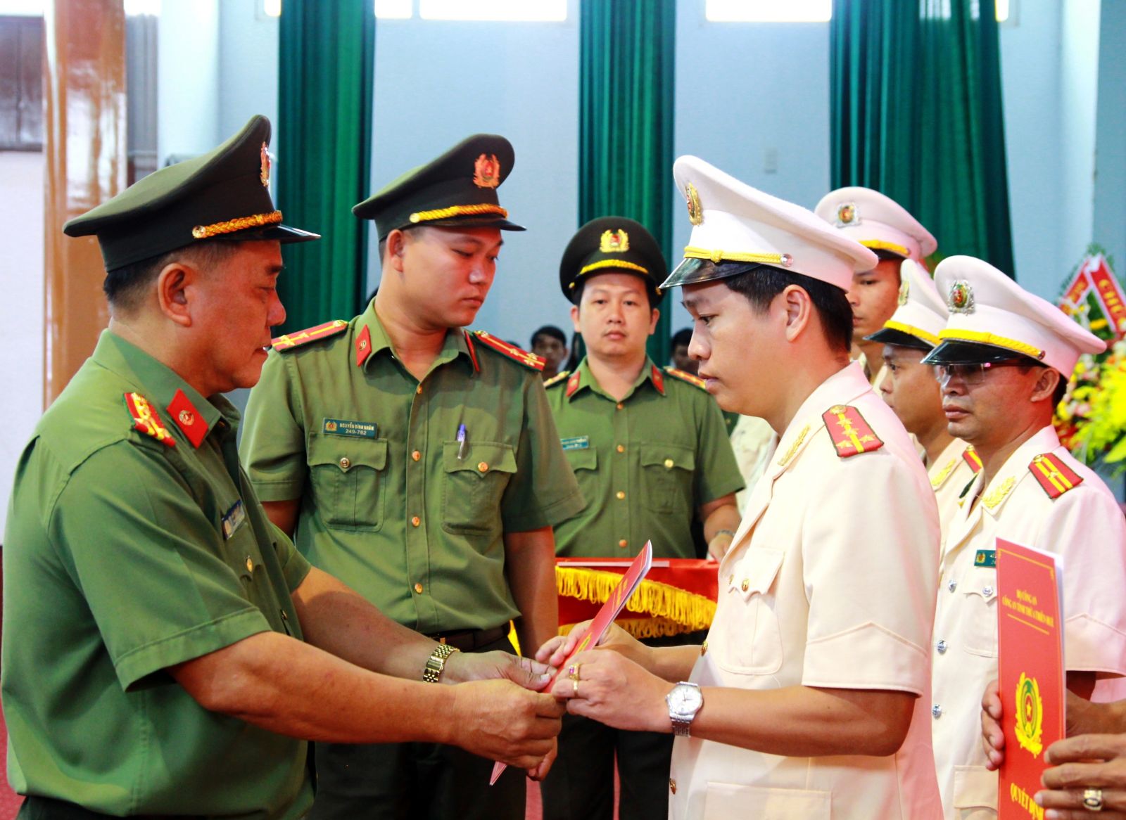 Công an tỉnh trao quyết định đưa công an chính quy về xã. Ảnh tư liệu