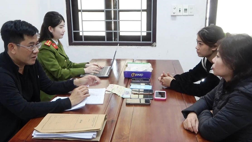 | Lực lượng công an làm việc với các đối tượng có liên quan đến hành vi đánh bạc bằng hình thức ghi lô đề |