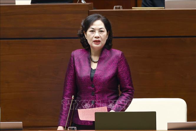 Thống đốc Ngân hàng Nhà nước Việt Nam Nguyễn Thị Hồng phát biểu giải trình, làm rõ một số vấn đề đại biểu Quốc hội nêu. Ảnh: Doãn Tấn/TTXVN
