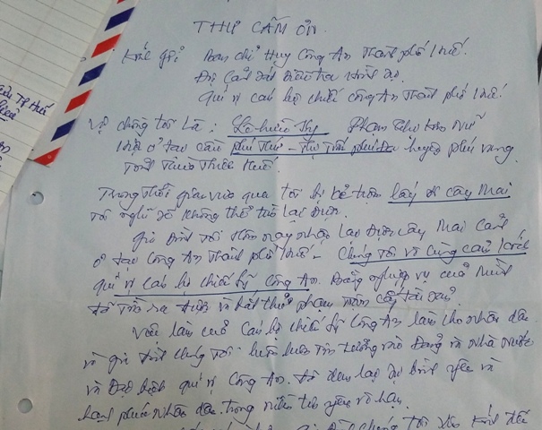 Người dân gửi thư cám ơn Công an TP. Huế sau khi nhận lại cây cảnh bị trộm