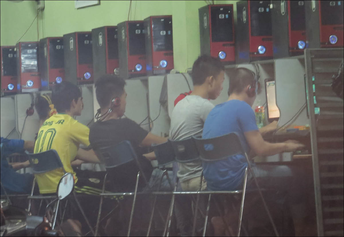 10 giờ sáng, trước quán game ở đường Đặng Huy Trứ, TP. Huế (gồm hai phòng) kín xe máy, xe đạp. Lát sau một khách hàng “nhí” đạp xe đến, ngó nghiêng ý chừng sợ không còn chỗ. Nhân viên đon đả “còn máy, vào đi”. Cánh cửa mở ra rồi đóng lại “nuốt” cậu bé choai choai cỡ tuổi học sinh cấp hai vào trong. Chốc chốc, một vài thanh, thiếu niên dựng xe phía ngoài rồi cũng mất hút sau cánh cửa. Trưa đứng bóng, nhưng vẫn không khách nào rời quán. Một thanh niên cầm giấy bút từ bên kia đường chạy qua, cũng là lúc quản lý mở cửa dặn: “Hỏi từng người ăn món gì. Ghi cho kỹ. Cấm nhầm”. Đó là chủ hàng cơm bụi, chuyên phục vụ cơm trưa cho game thủ mải mê “ôm” máy vi tính xuyên trưa.