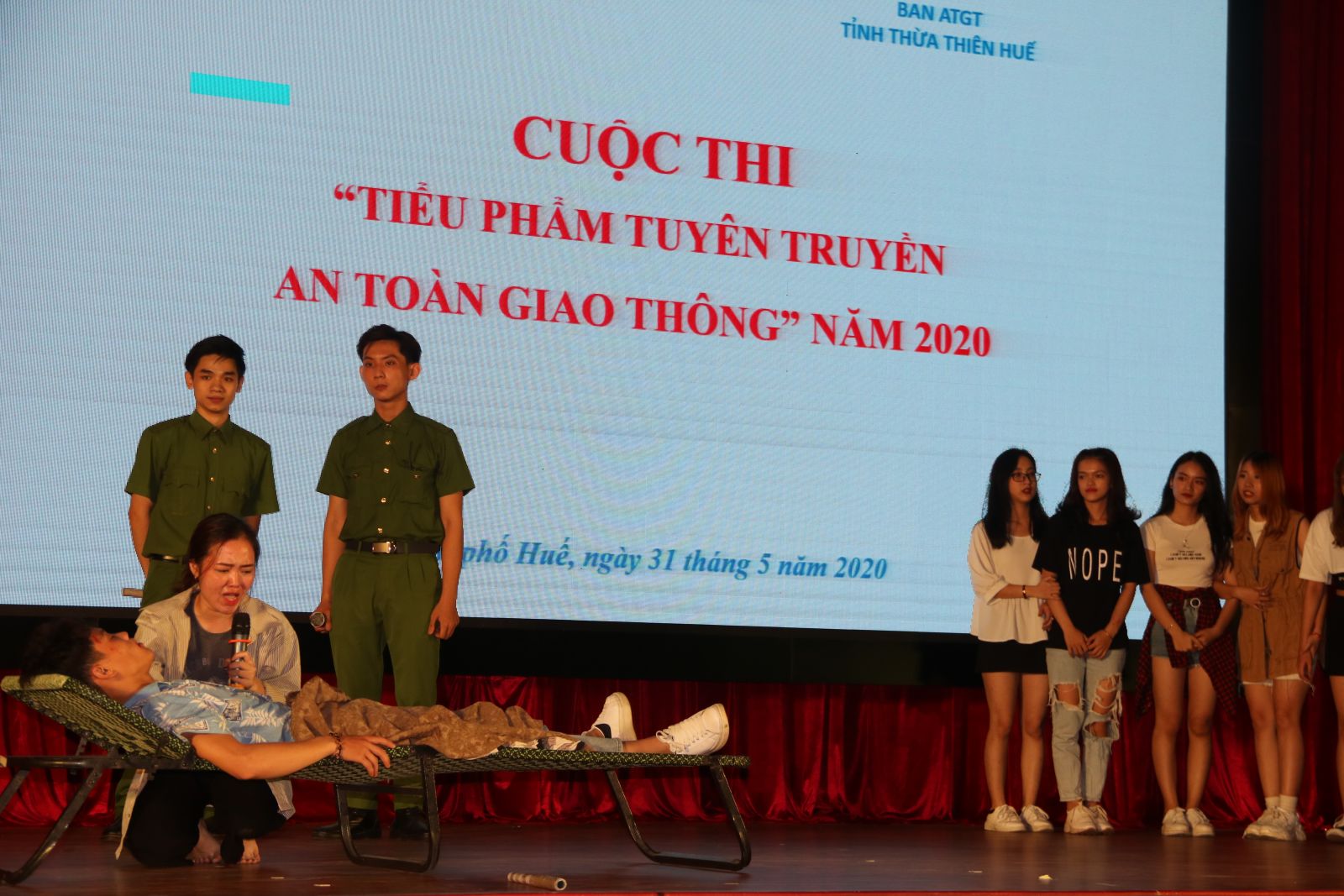 *Tối cùng ngày, Hội Sinh viên ĐH Huế tổ chức hội thi tiểu phẩm sân khấu tuyên truyền an toàn giao thông với sự tham gia của 9 đội thi đến từ các trường, khoa trực thuộc ĐH Huế. Các đội thi xây dựng các tiểu phẩm sân khấu: Kịch ngắn, chèo, tuồng, cải lương...