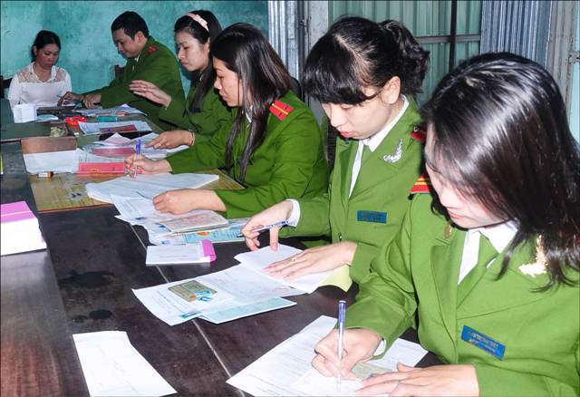 Từ 1/1/2016, thẻ CCCD sẽ thay thế cho CMND như hiện nay (Trong ảnh: cán bộ Phòng PC 64 đang làm CMND cho người dân)