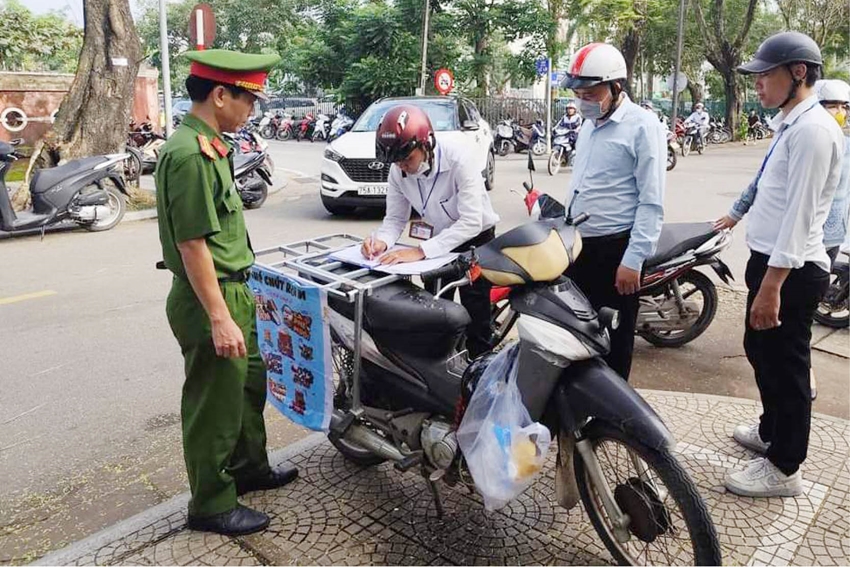 | Công an và lực lượng đô thị phường Vĩnh Ninh xử lý các trường hợp đậu đỗ xe không đúng quy định |