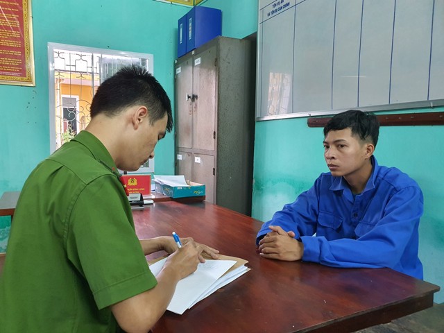 Lực lượng nghiệp vụ Công an TX. Hương Thủy lấy lời khai 1 trong 2 đối tượng trộm