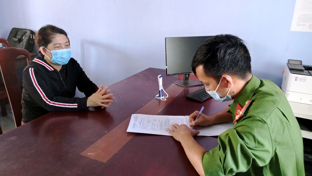 Công an thị trấn Phong Điền lập biên bản vi phạm các quy định về phòng, chống dịch bệnh COVID-19 đối với bà Nguyễn Thị Tâm