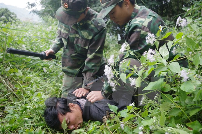 Một đối tượng bị bắt giữ khi đang đưa người qua biên giới. (Ảnh: Quang Duy/TTXVN)