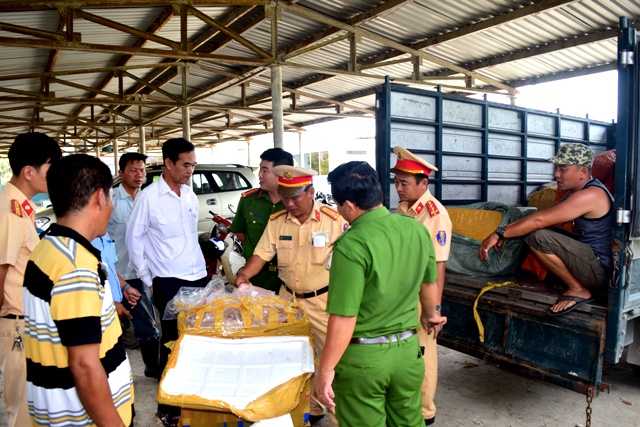 Tại thời điểm kiểm tra, tổ công tác phát hiện trên xe chở 12 thùng xốp bên trong chứa 840 kg sụn gà không có hóa đơn chứng từ, không có giấy chứng nhận kiểm dịch an toàn thực phẩm và không có nguồn gốc xuất xứ.