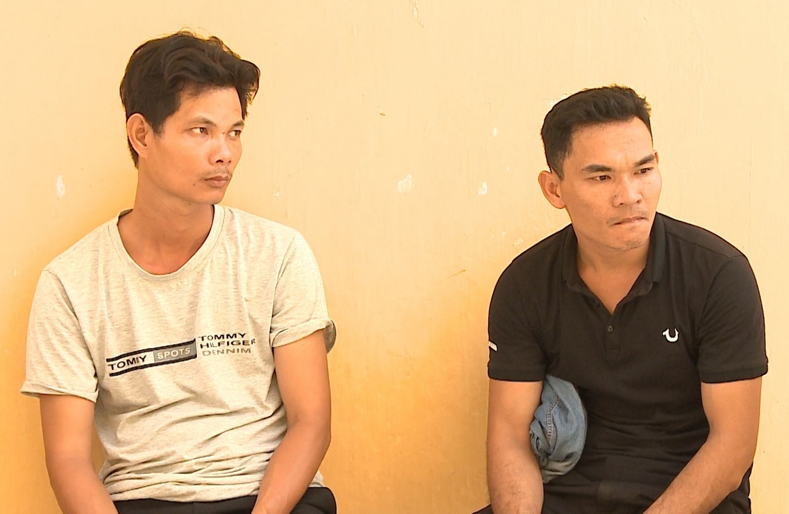 2 trong 5 đối tượng khai thác cát trái phép bị Công an TX. Hương Trà bắt giữ