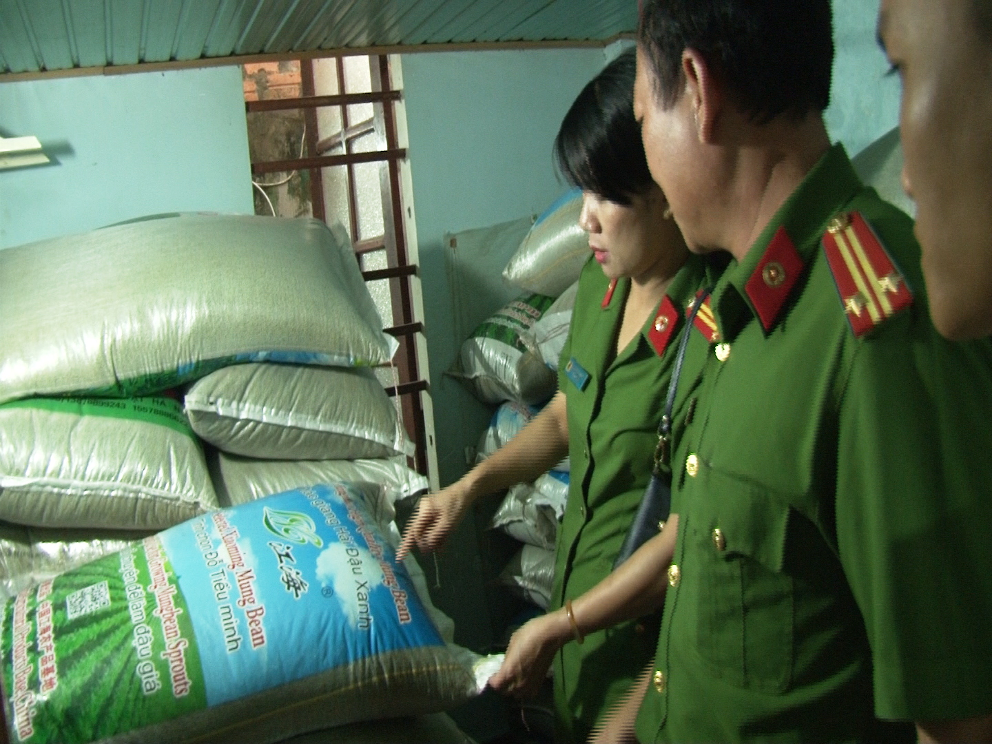 Tại thời điểm kiểm tra, đơn vị phát hiện có 60 bao đậu xanh, mỗi bao có trọng lượng 50kg và 200 gói hoá chất, mỗi gói chứa 20 ống dạng nước dùng làm nguyên liệu giá đỗ chưa rõ nguồn gốc xuất xứ. Trên mỗi bao đậu xanh và các gói hoá chất đều có nhãn mác ghi bằng chữ Trung Quốc. Có 44 thùng hàng đang ủ giá đỗ chờ xuất ra thị trường.