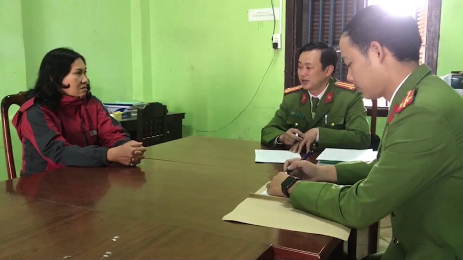 Lực lượng công an làm việc với bà Hoa về hành vi vận chuyển rượu không nhãn mác