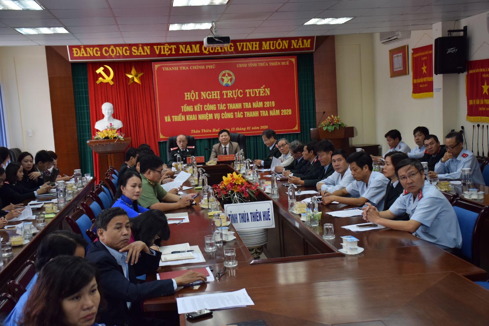 Tại điểm cầu Thừa Thiên Huế, ông Nguyễn Dung, Phó Chủ tịch UBND tỉnh và ông Hồ Bê, Chánh Thanh tra tỉnh chủ trì