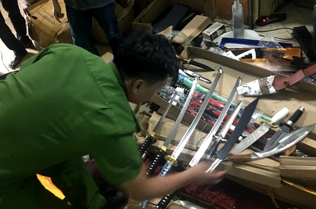 Một lượng lớn vũ khí thô sơ là đao, kiếm... bị lực lượng Công an phát hiện