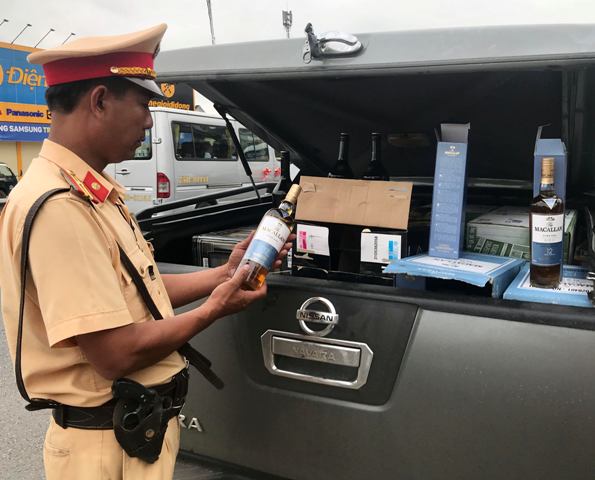 Cụ thể, tại km 866 + 300 đoạn qua thị trấn Phú Lộc (Phú Lộc), lực lượng CSGT phối hợp với Phòng Cảnh sát kinh tế Công an tỉnh kiểm tra, phát hiện xe ô tô mang biển kiểm soát 74C – 01652 do Trần Anh Kha, trú tại TP. Đồng Hà (Quảng Trị) điều khiển, trên xe đang chở hơn 450 chai rượu, có nguồn gốc từ nước ngoài.
