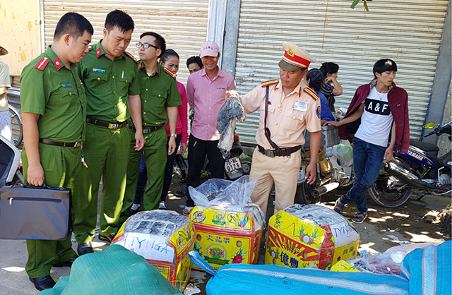 Lực lượng công an bắt giữ một lượng lớn thực phẩm bẩn trên đường đưa đi tiêu thụ