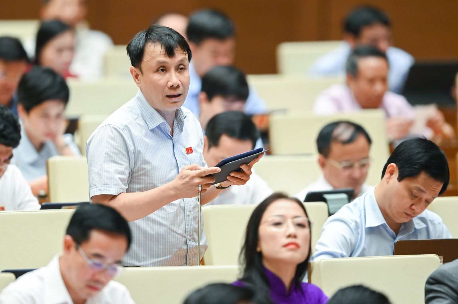 Đại biểu Phạm Như Hiệp (thuộc Đoàn ĐBQH tỉnh) phát biểu tại hội trường. Ảnh: Đoàn ĐBQH tỉnh