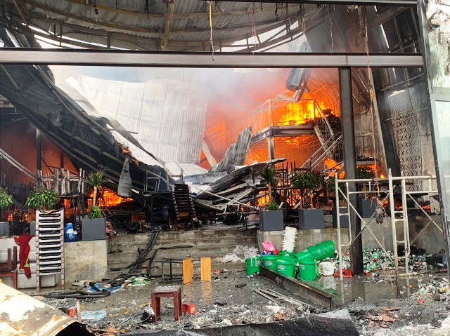 Trước đó, khoảng 8 giờ 15 phút sáng 3/3, vụ cháy lớn xảy ra tại quán bar New Poc Poc Beer khiến lực lượng chức năng phải điều 8 xe chữa cháy, hàng chục cán bộ, chiến sĩ... dập tắt đám cháy.