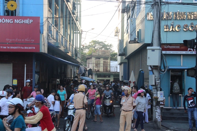 | Hàng trăm người hiếu kỳ theo dõi diễn biến vụ việc |