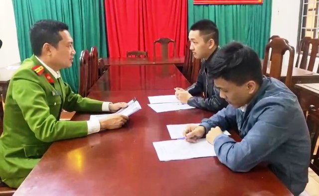 Lực lượng công an làm việc với 2 đối tượng có liên quan
