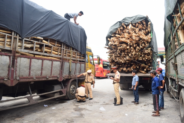 Tạm giữ nhiều xe ô tô chở gỗ tràm vi phạm luật giao thông