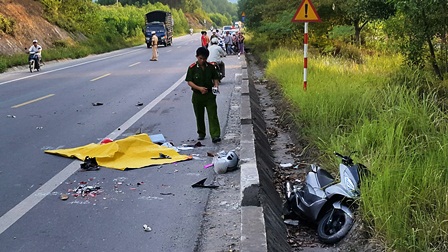 Hậu quả, bà Lan chết tại chỗ, ông Phong bị gãy chân và đa chấn thương đang được cấp cứu tại bệnh viện, xe máy hư hỏng nặng.