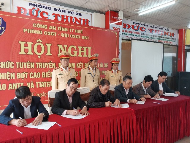 Các chủ doanh nghiệp kinh doanh vận tải hàng hóa, hành khách bằng ô tô, các tài xế xe khách cũng đã ký cam kết với Đội CSGT đường bộ số 1, Phòng CSGT Công an tỉnh tuyệt đối không uống rượu, bia hoặc dùng các chất kích thích khi tham gia giao thông; chấp hành nghiêm Luật Giao thông đường bộ và hệ thống biển báo, đèn tín hiệu; chấp hành hiệu lệnh của lực lượng CSGT.
