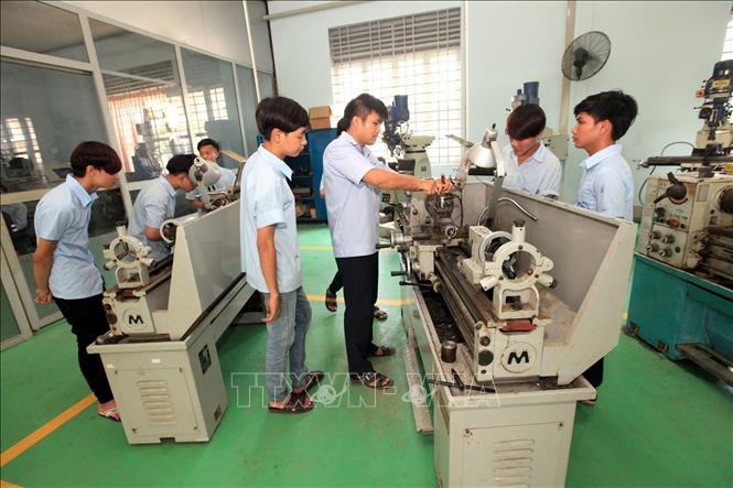 Giờ học cơ khí tại Trường Cao đẳng nghề tỉnh Bình Phước. Ảnh tư liệu: Anh Tuấn/TTXVN