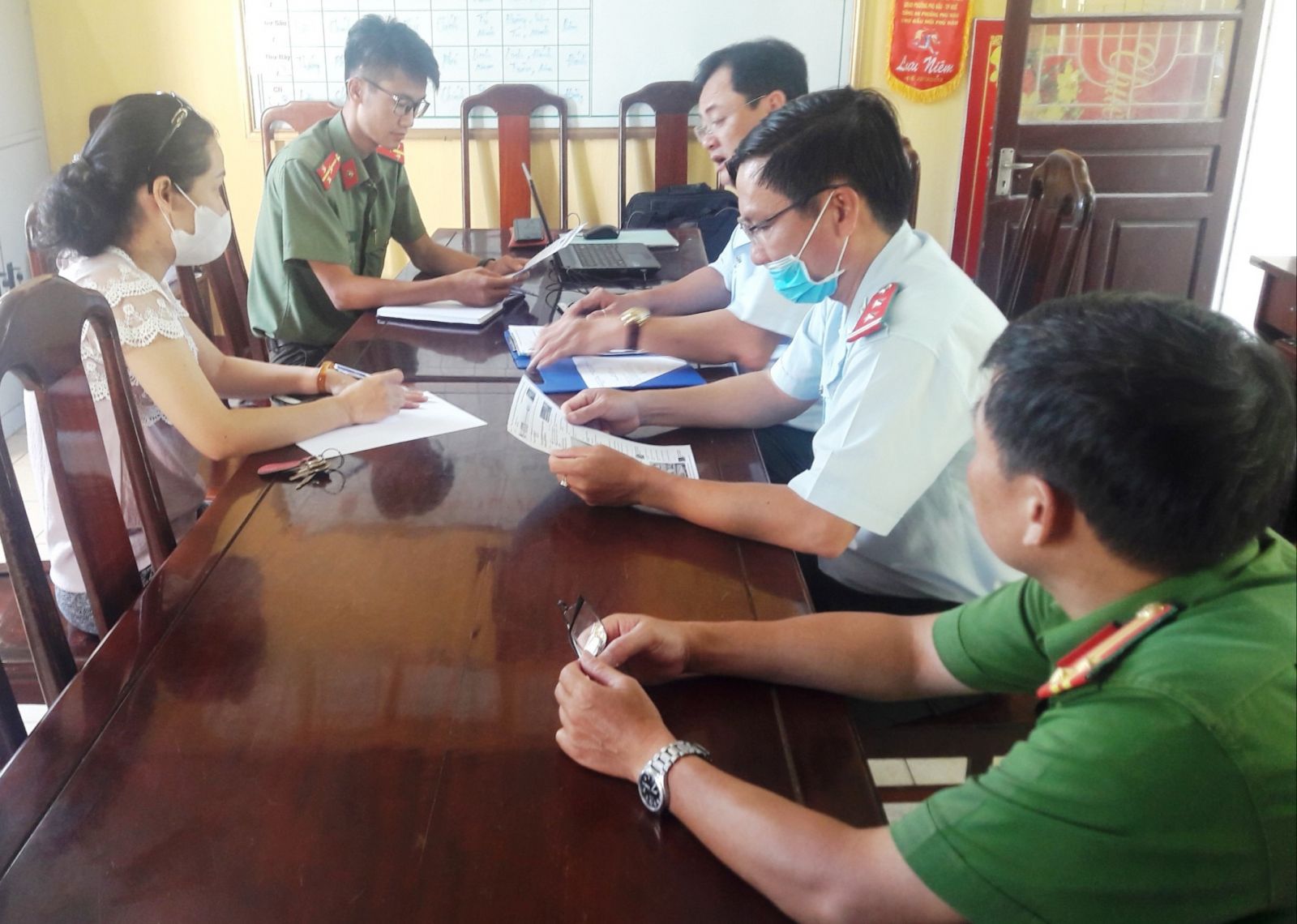 Cơ quan chức năng làm việc với bà M. P. Ảnh: NXS