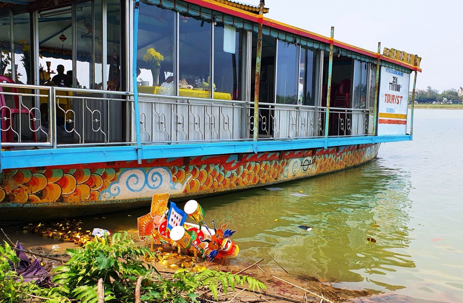 Chủ tàu rải vàng mã xuống sông Hương bị phạt 1,5 triệu đồng. Ảnh: IOC