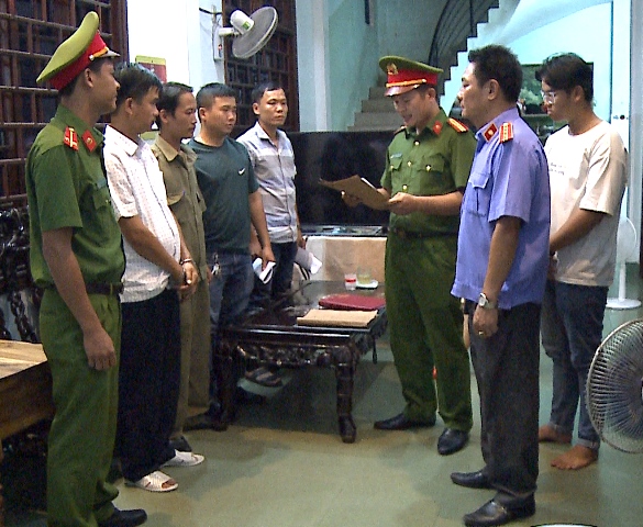 Đọc lệnh khởi tố, bắt tạm giam đối tượng Phạm Hồng Hải (thứ 2 từ trái qua)