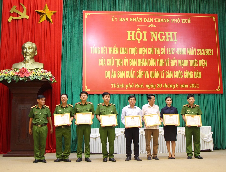 Tặng giấy khen của Chủ tịch UBND TP. Huế cho các tập thể và cá nhân có thành tích xuất sắc trong dự án sản xuất, cấp CCCD trên địa bàn