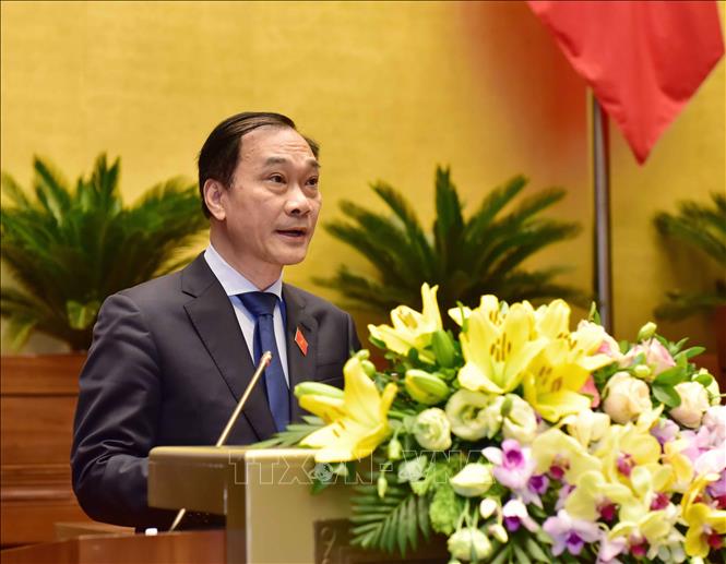 Chủ nhiệm Ủy ban Kinh tế của Quốc hội Vũ Hồng Thanh trình bày Báo cáo giải trình, tiếp thu, chỉnh lý dự án Luật Chứng khoán (sửa đổi). Ảnh: Phương Hoa/TTXVN