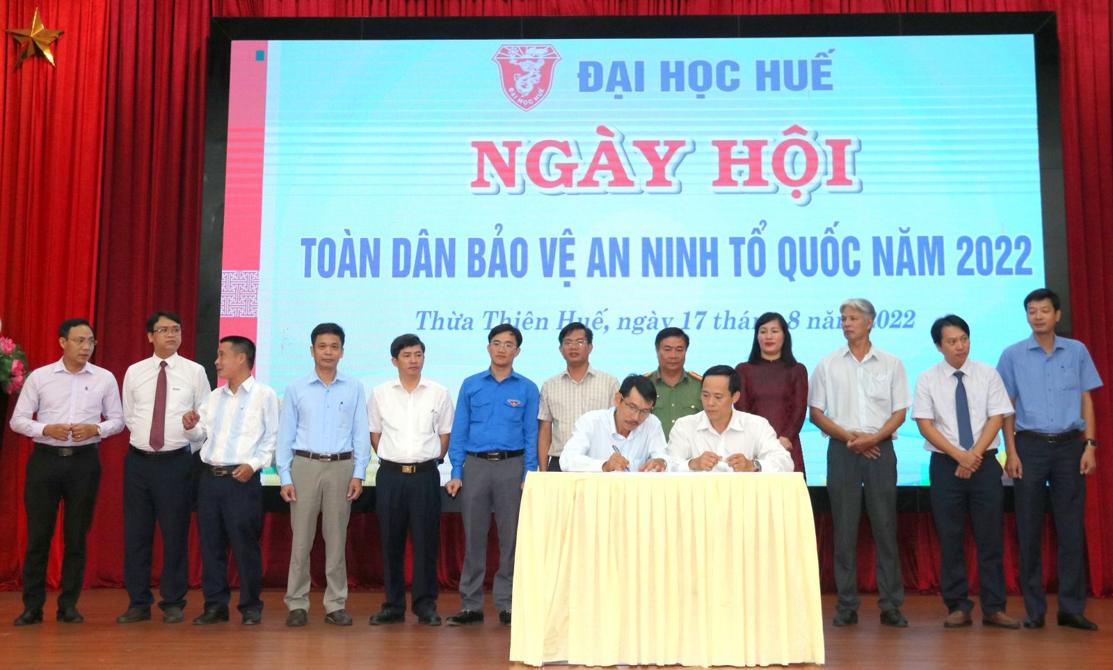 Tại ngày hội, đại diện lãnh đạo ĐH Huế đã phát động phong trào thi đua thực hiện công tác xây dựng phong trào toàn dân bảo vệ ANTQ. Các đơn vị thành viên và đơn vị đào tạo trực thuộc ĐH Huế cũng đã ký kết giao ước thi đua.