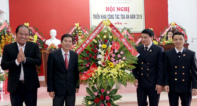 Các đại biểu tặng hoa chúc mừng TAND huyện Phú Lộc