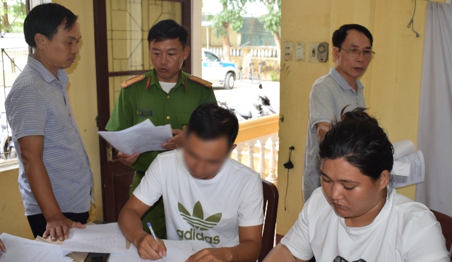 Công an TP. Huế lấy lời khai một đối tượng sử dụng, buôn bán ma túy (ngoài cùng bên phải)