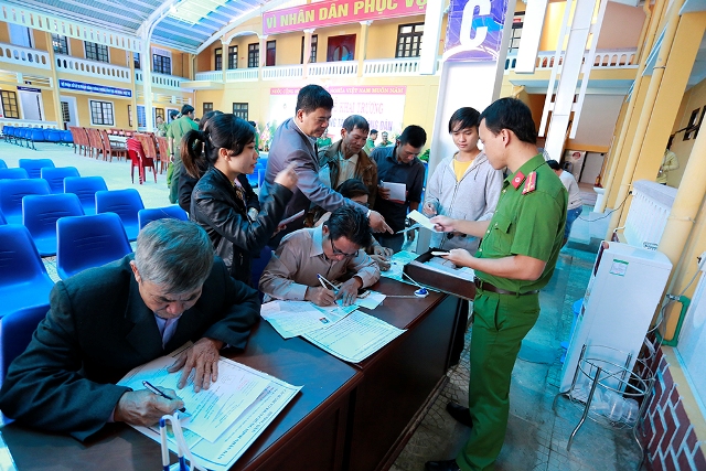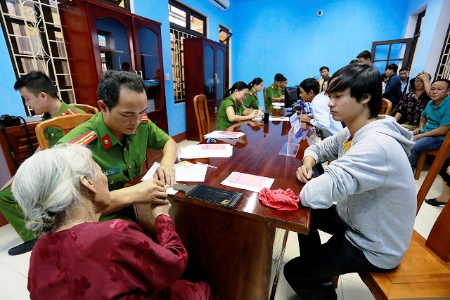 Những người lớn tuổi được các cán bộ chiến sĩ tận tình giúp đỡ để làm những thủ tục cần thiết