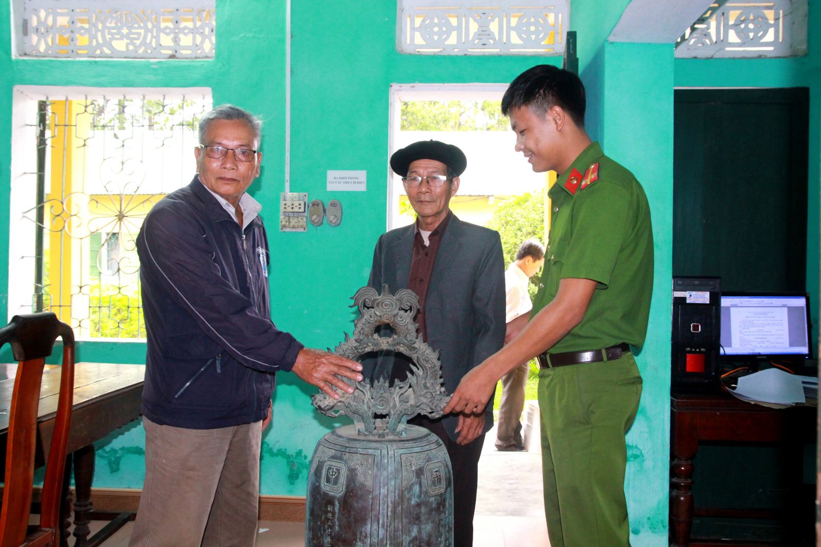 "Nhằm tránh sự phát hiện của lực lượng công an, sau khi trộm được chiếc chuông cổ, các đối tượng đã cho hàn lại vết nứt tại thân chuông với 2 mục đích chính, đó là bán có giá trị hơn và làm thay đổi nhận dạng để che giấu lực lượng công an. Tuy nhiên, bằng các biện pháp nghiệp vụ, chúng đã bị lực lượng công an bắt giữ, thu hồi cổ vật đưa về cho người dân”, Đại úy Lê Văn Hữu kể lại.