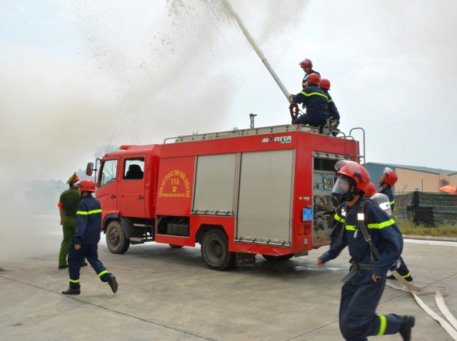 Một buổi diễn tập PCCC và CNCH ở KCN Phú Bài
