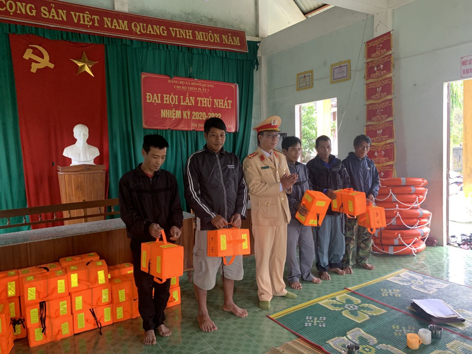 Đội CSGT đường thủy tặng 50 phao cứu sinh cho người dân