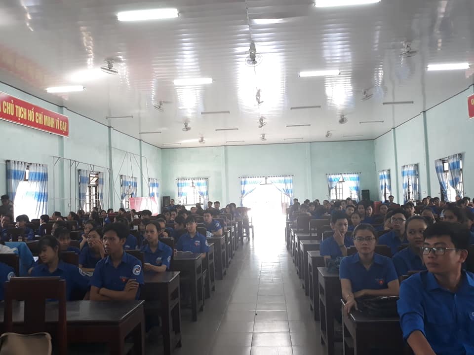 Hơn 200 đoàn viên thanh niên 6 xã huyện Phú Vang chăm chú dự khán, tiếp thu những kiến thức pháp luật thông qua phiên tòa giả định