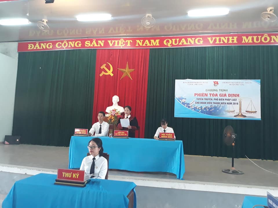 Theo anh Nguyễn Thanh Hoài - Bí thư Huyện Đoàn Phú Vang, thì Huyện Đoàn đã xây dựng kế hoạch, chỉ đạo chi đoàn VKSND-TAND huyện phối hợp các xã, thị trấn triển khai, thông qua phiên tòa giả định để truyên truyền sâu rộng pháp luật trên địa bàn toàn huyện, nâng cao nhận thức, góp phần đưa pháp luật vào cuộc sống. Đây là phiên tòa giả định đầu tiên để tuyên truyền pháp luật đi vào chiều sâu cho ĐVTN cụm II (toàn huyện chia 3 cụm) gồm các xã Phú Mỹ, Phú Thượng, Phú An, Phú Dương, Phú Mậu, Phú Thanh. Sau đó sẽ tiếp tục nhân rộng trên toàn huyện.