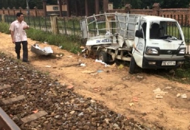 Va chạm giữa ô tô tải và tàu hỏa, 2 người bị thương