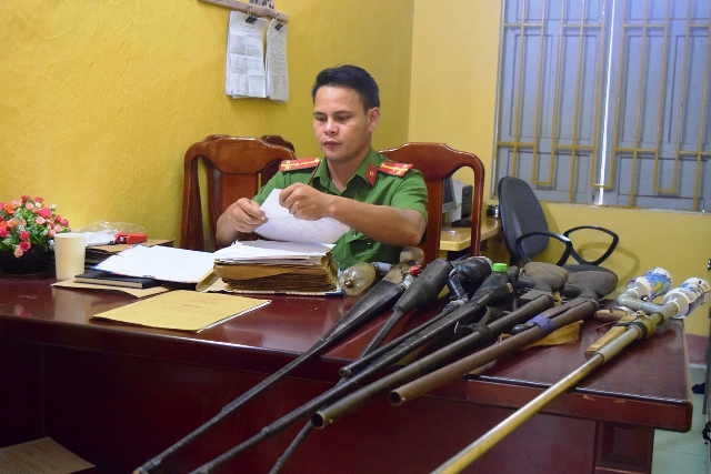 | Người dân tự nguyện mang súng đến nộp cho cơ quan chức năng |