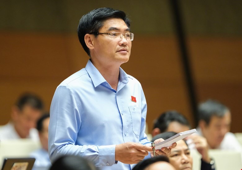 Ông Nguyễn Thanh Hải, ĐBQH, Viện trưởng Viện Kiểm sát Nhân dân tỉnh góp ý tại hội trường. Ảnh: Đoàn ĐBQH tỉnh