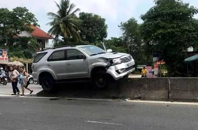 Khi xe chạy đến đoạn đường qua khu vực Thừa Lưu xã Lộc Tiến thì tài xế đâm trực diện vào dải phân cách bằng bê tông nằm giữa đường. Sau khi tông mạnh, xe Fortuner bay lên cao rồi leo đậu giữa dải phân cách.