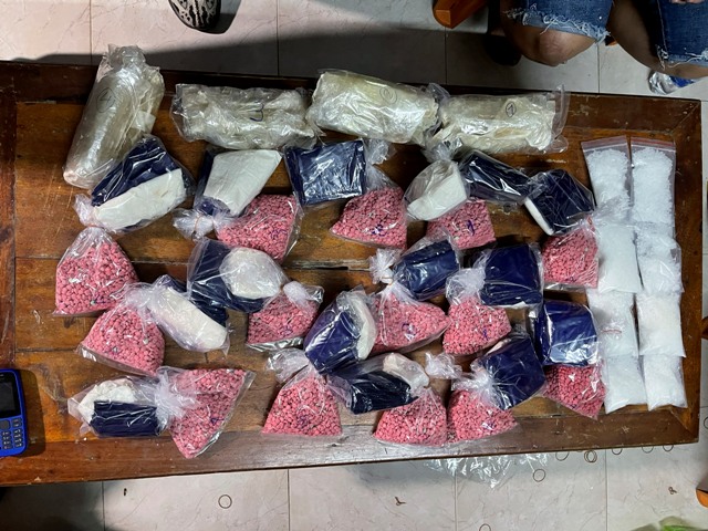 Tiếp đó, lực lượng công an tiếp tục khám xét nơi ở của các đối tượng T., D. và nhà cậu ruột của T., ở tổ 11 phường Thủy Xuân (TP. Huế) phát hiện và thu giữ thêm 30.460 viên ma túy dạng hồng phiến, 1,32kg ketamine, 63 viên thuốc lắc; 1 khẩu súng rulo, 40 viên đạn và 2 cây dao. Tổng khối lượng ma túy tổng hợp mà lực lượng công an thu giữ được của các đối tượng là gần 5kg.