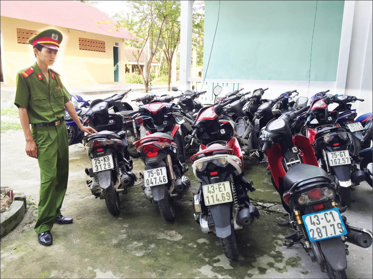 Khuya 17-1, nhóm này đột nhập vào nhà anh Lê Quốc Ph. ở phường Thủy Phương nhưng không phát hiện được tài sản có giá trị, ngoại trừ chiếc xe AirBlade BKS 75S1- 9.000. Vì vậy, 2 đối tượng đứng bên ngoài cảnh giới, còn đối tượng bên trong lục lọi tìm khóa xe, giấy tờ, rồi sau đó lấy trộm khóa cổng, dắt xe ra ngoài. Lấy trộm xe trót lọt, chúng dắt xe đi được vài trăm mét, phát hiện nhà bà Nguyễn Thị L. có chiếc xe Jupiter còn mới nên tiếp tục đột nhập vào bên trong lấy trộm. Trước đó, vào tối các ngày 4 và 8-1, ba đối tượng trên đột nhập vào nhà ông Lê H. ở Thủy Phương lấy trộm xe AirBlade BKS 75G1- 04746 và vào nhà ông Trần Hữu H. lấy trộm xe AirBlade 75G1-103.67. Ngoài ra, các đối tượng còn thực hiện một số vụ trộm xe khác.