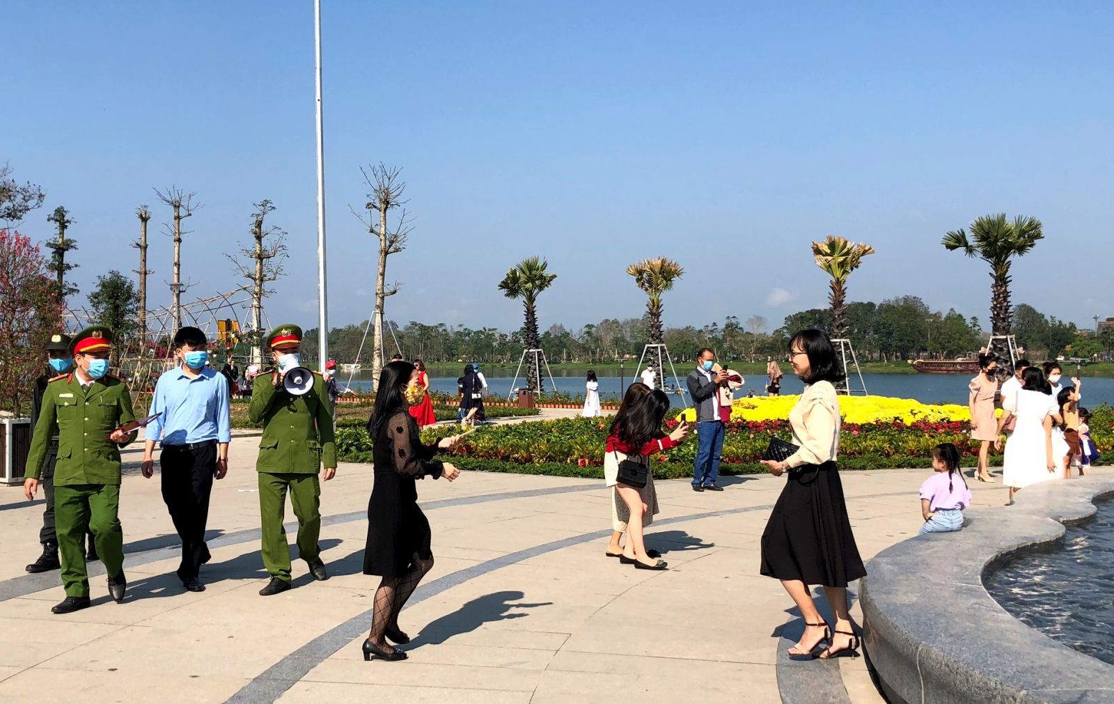 HNN.VN - Chiều 15/2 (mùng 4 tết), Công an TP. Huế cho biết, những ngày Tết Nguyên đán Tân Sửu 2021, nhiều người dân trên địa bàn thành phố cũng như các vùng lân cận tập trung về các khu vui chơi công cộng để tham quan, vui xuân.